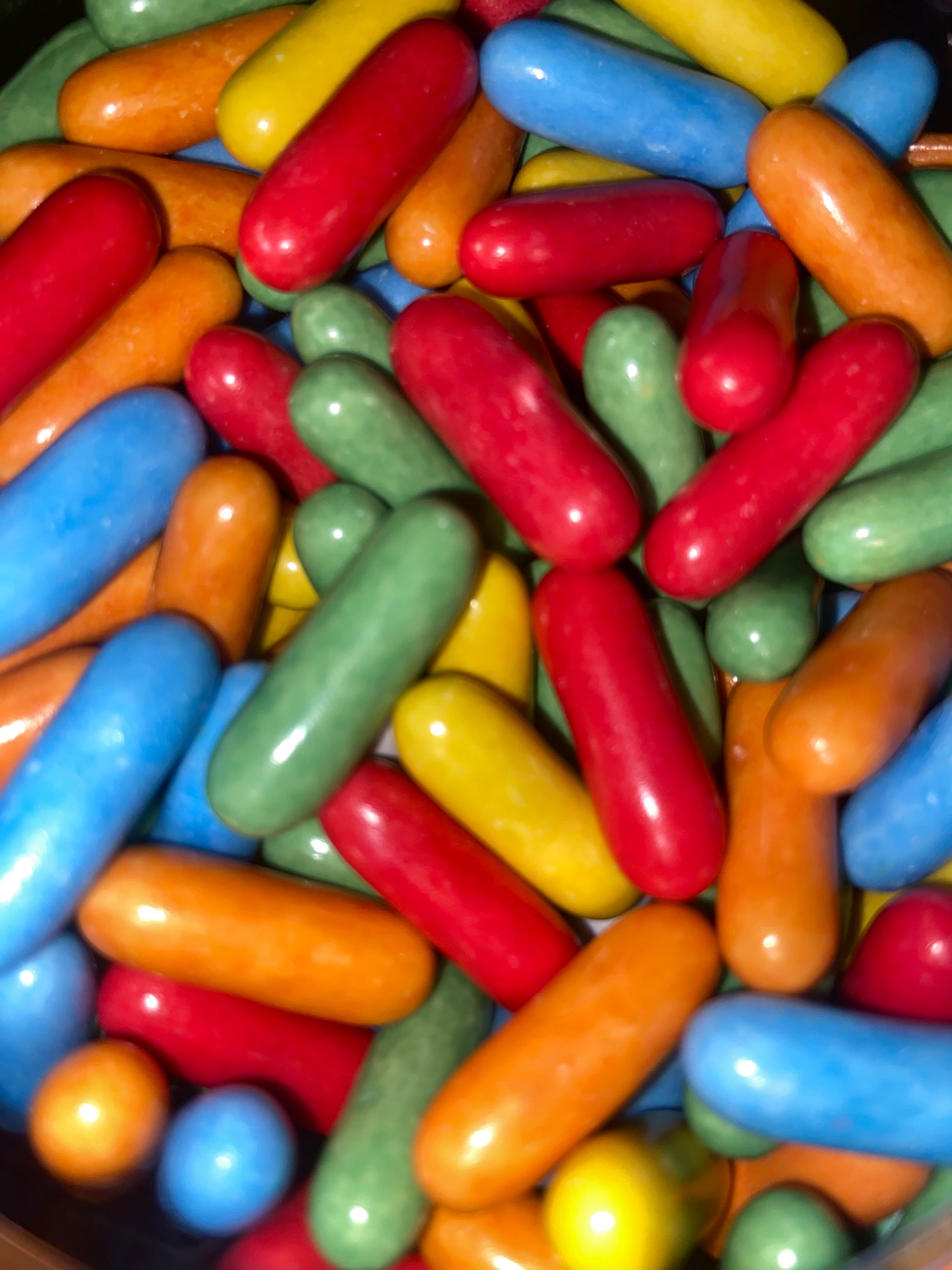 ingrédients : sucre, sirop de sucre mélassé, farine de blé, amidon, extrait de réglisse, maltodextrine, concentrés de fruits et de plantes : carthame, spiruline, radis, citron, cassis, patate douce, carotte, arôme, sel, émulsifiants : mono -et diglycérides d'acide gras, correcteur d'acidité : carbonate acide de sodium, agents d'enrobage ; cire d'abeille blanche et jaune, cire de carnauba.