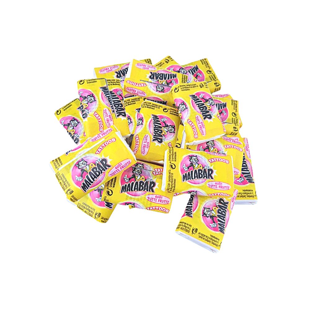 Craquez pour les traditionnels chewing-gum Malabar ! Impossible de passer à côté de ses bulles légendaires, de ses goûts incomparables et de ses tattoos* inimitables.