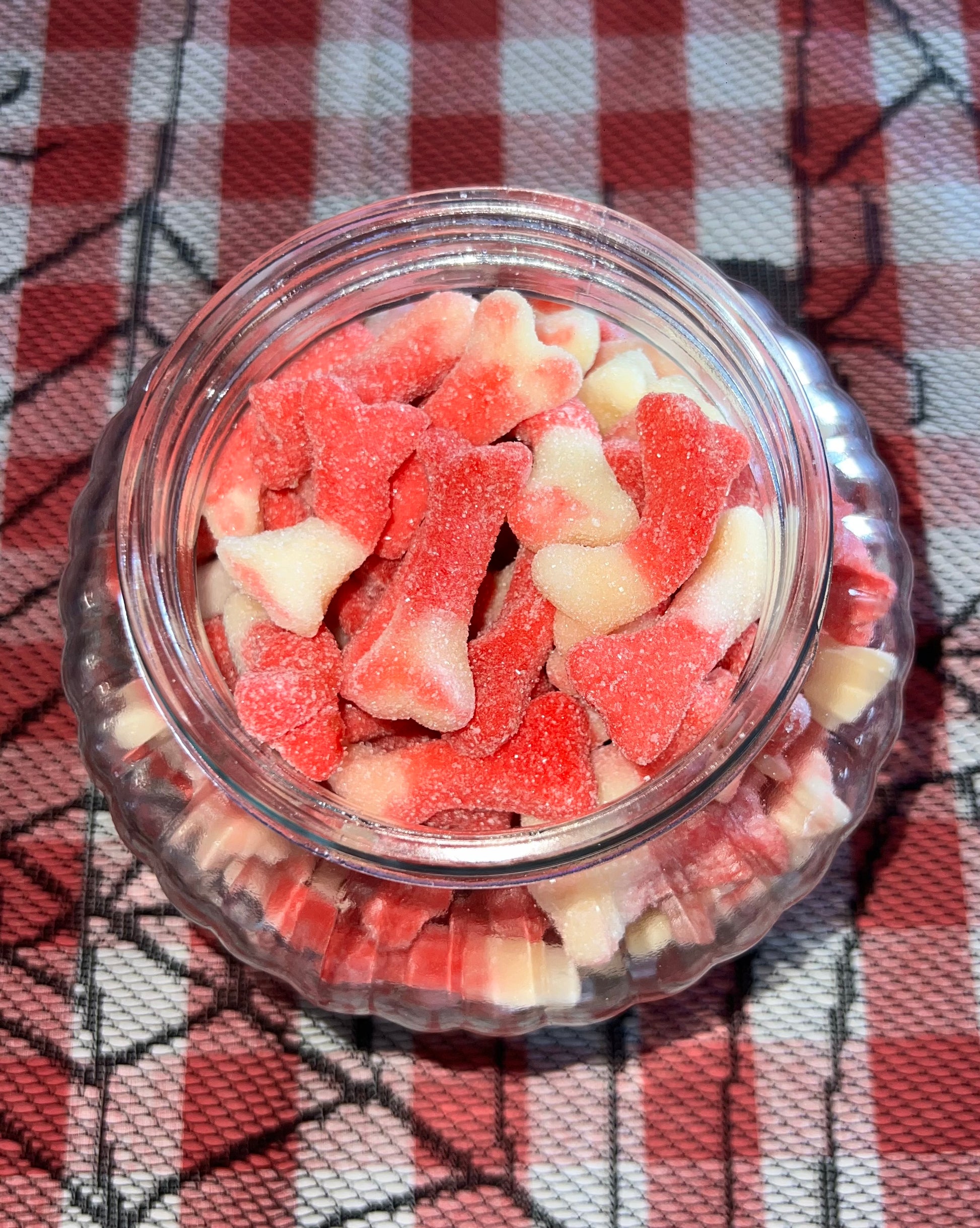 ingrédients : sirop de glucose, sucre, eau, gélatine de boeuf halal, amidon de pomme de terre , acidifiants : E330, e296, E270, correcteur d'acidité : malate de sodium, arôme artificiel, colorants : E163, E129, E160a(l). Le E129, peut avoir des effets négatifs sur l'activité et l'attention chez l'enfants.